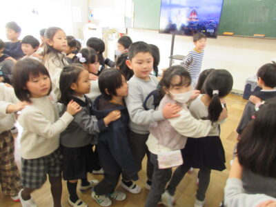 年長組の子どもたちが、第四小学校での交流活動に参加しました。