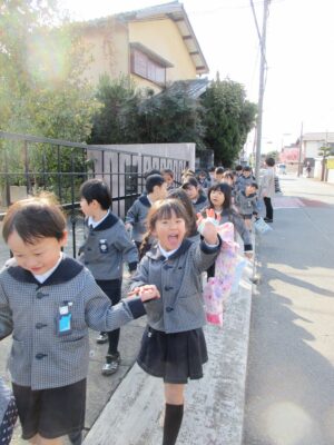 上履きの袋を片手にドキドキわくわく出発です!