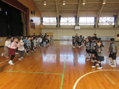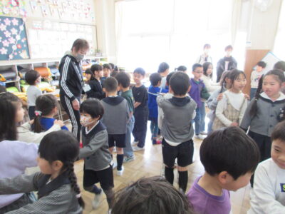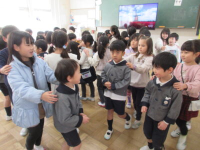 年長組の子どもたちが、第四小学校での交流活動に参加しました。