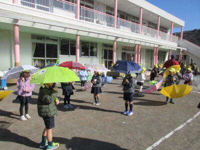 傘のさし方や、持ち方、開き方やたたみ方も覚えました。