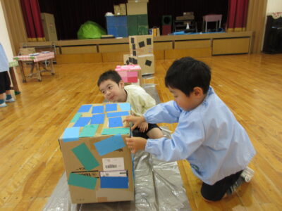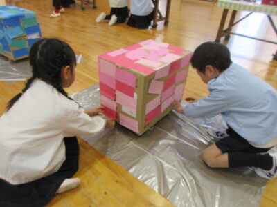 子どもたちは、みんなで力を合わせて一つの物を作り上げていく